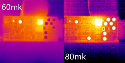 Here you need to understand a concept - temperature resolution, also called thermal sensitivity or noise equivalent temperature difference (NETD) of the thermal camera, refers to the minimum temperature difference that needs to be measured. Generally speaking, the thermal sensitivity of a thermal camera can be between 0.025°C or less to 0.075°C or less. In other words, it is the minimum value of temperature difference that can be detected by the thermal camera you are using. As you can see from the graph, the smaller the NETD, the less thermal imaging noise and the more accurate the imaging.